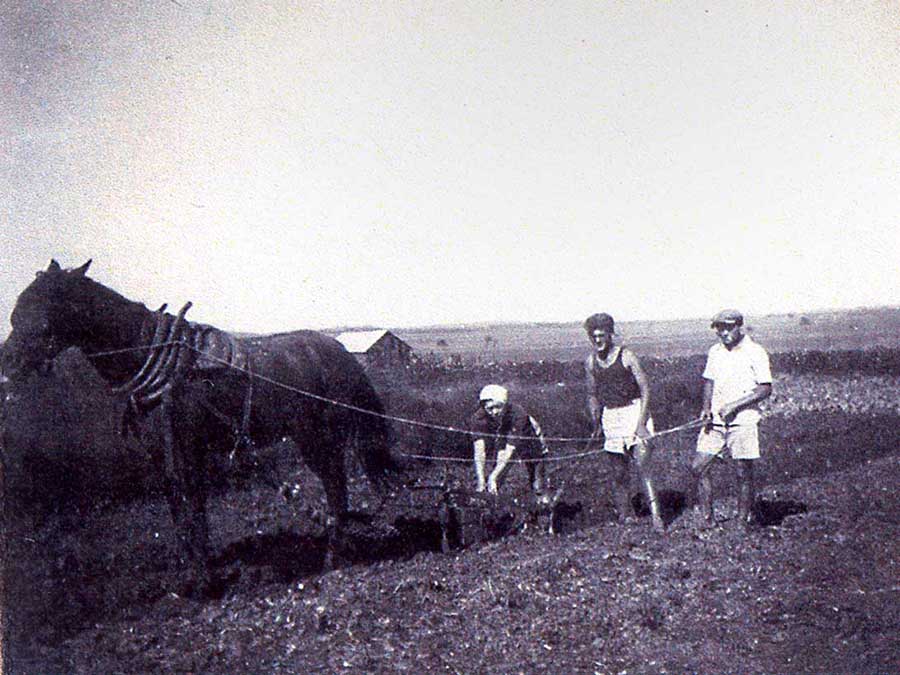 אליעזר ואטקה חורשים בשדות שאר ישוב..