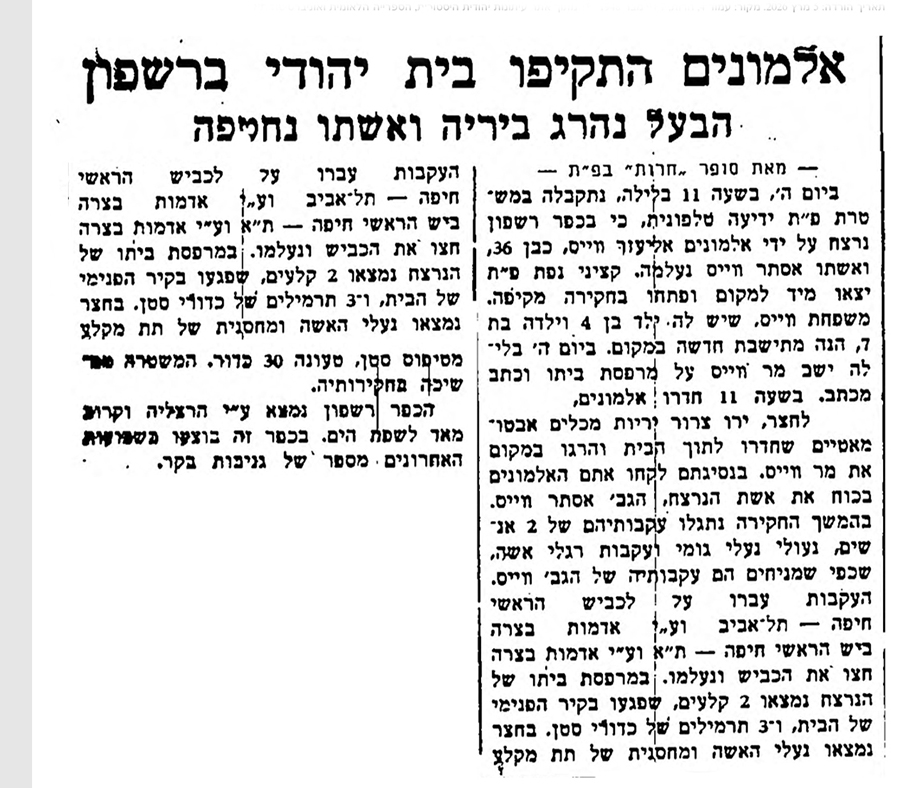 אטקה שבה מהשבי - רצח וחטיפה ברשפון 1948                חזרה ל"ועוד"    לתפריט ראשי