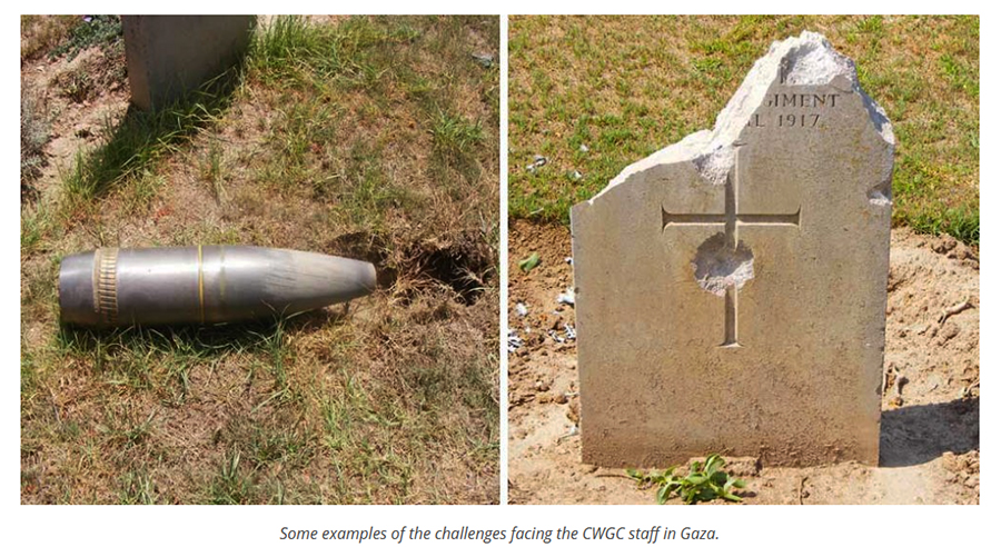 ואם פתחתי בעזה אסיים בה. לאור מבצע "חרבות ברזל" פונו מהרצועה העובדים השומרים ומחזקים את בתי העלמין של חבר העמים בעיר עזה ובדיר אל באלח. אתרים אלה נפגעו בקרבות. הנה צילום מתוך אתר הועדה של חבר העמים: